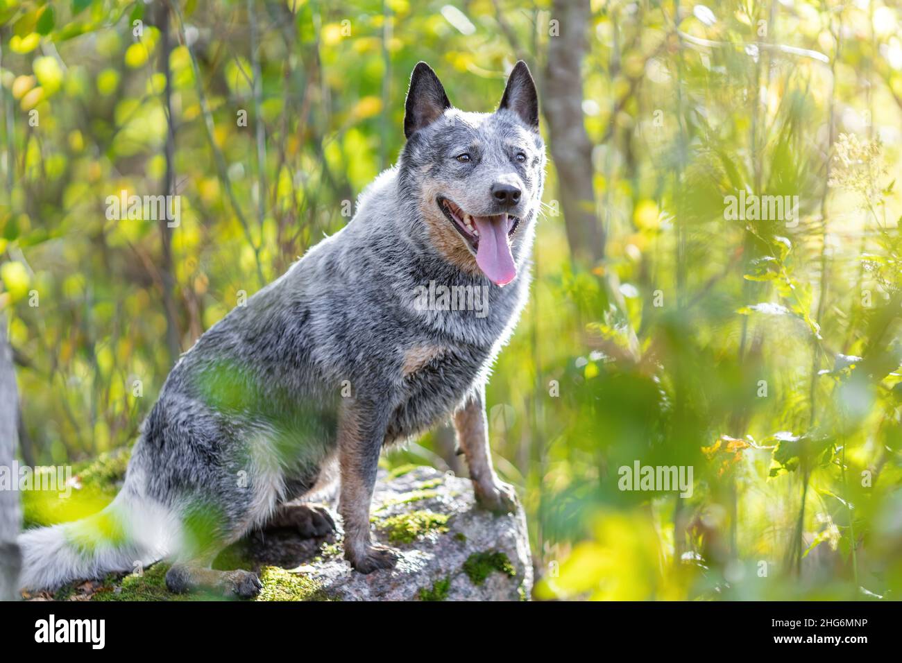 Dog Sitting On Rock High Resolution Stock Photography And Images Alamy